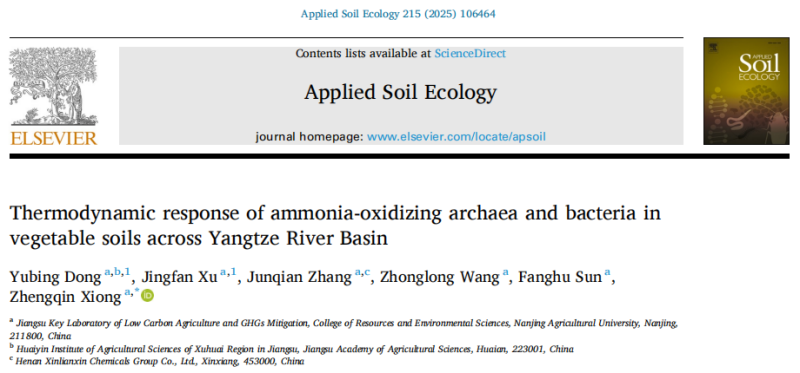 近日,淮阴所土肥中心研究团队在长江中下游流域温室蔬菜土壤氨氧化古菌和细菌的热力学参数对温度变化的响应方面取得重要进展。