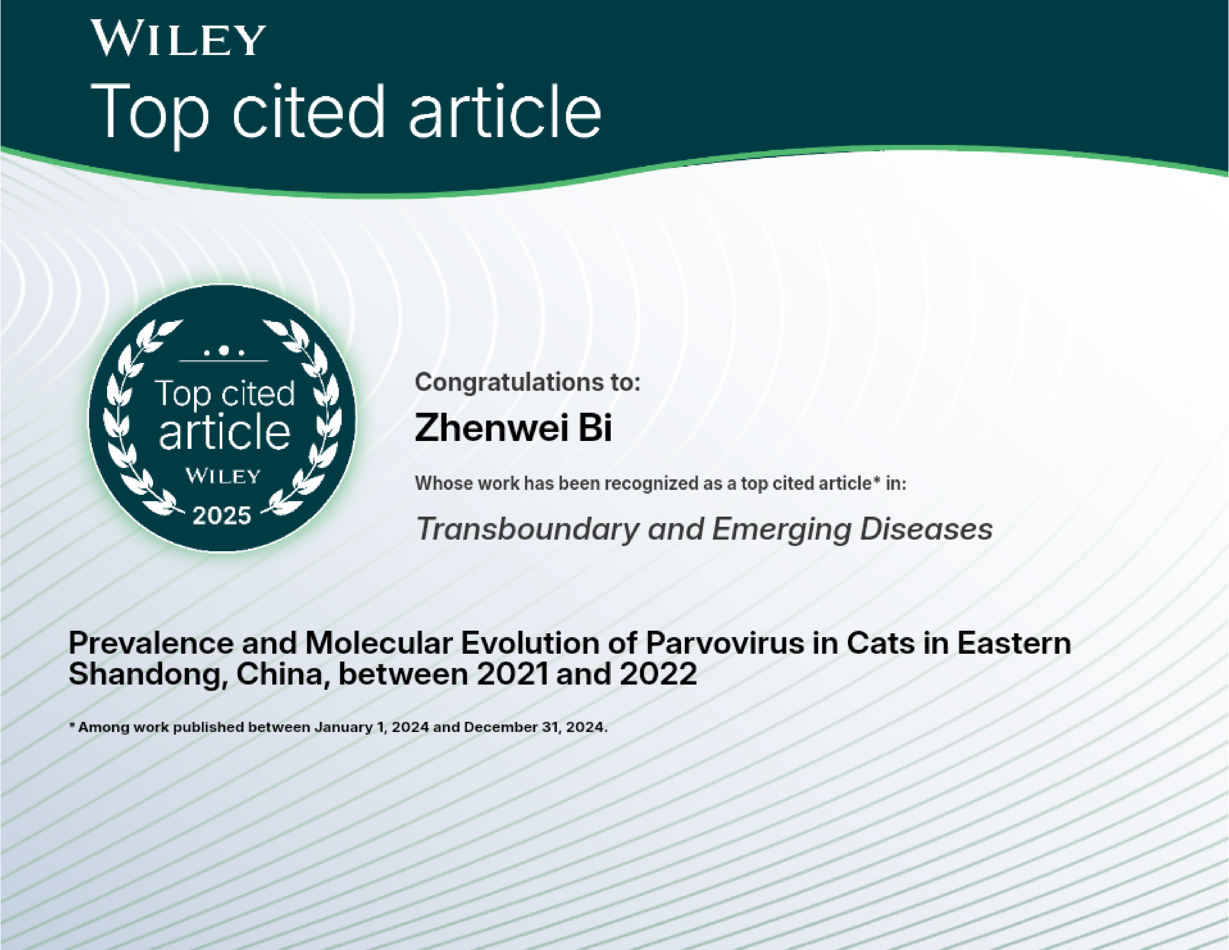 我院宠物团队研究成果入选Wiley国际高被引论文 彰显宠物疫病...