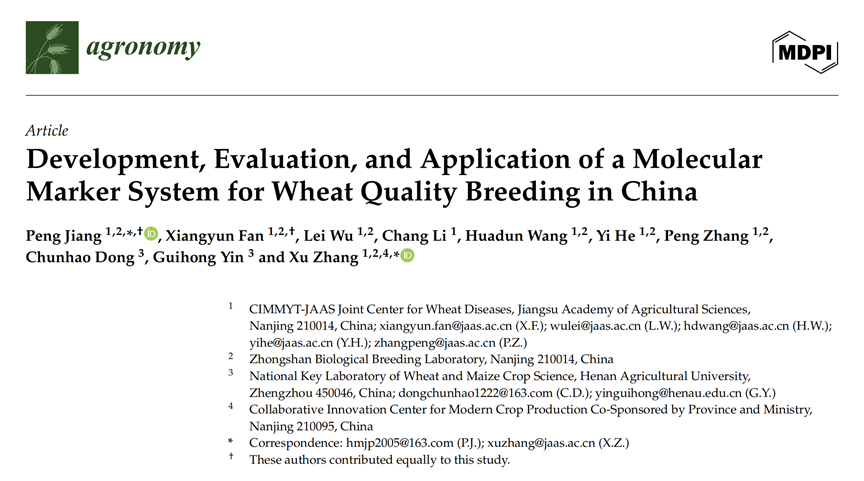 近日,粮作所小麦遗传育种团队在国际期刊《Agronomy》发表了关于小麦品质分子标记选择体系(Quality Molec...