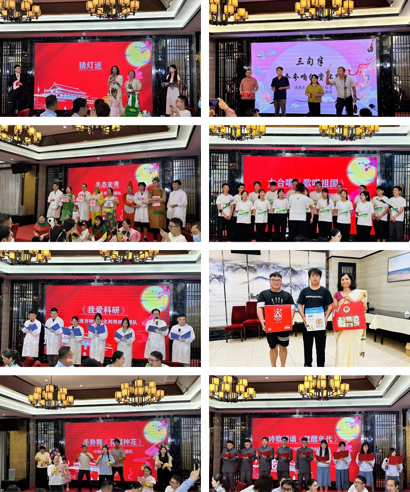 晚会开始时,农业面源团队全体高唱《歌唱祖国》,表达对祖国的热爱之情。随后进行了猜灯谜活动,让参与者在解谜的过程中感受节日的欢乐。古诗词飞花令环节,参与者依次围绕“花、好、月、圆”吟诵古典诗词,引发了现场观众的阵阵掌声。最精彩的环节当属大合唱,所有人齐声唱出了《今天是你的生日》和《我和我的祖国》,歌声深情激荡,充满正能量。此外,身姿婀娜的舞蹈表演、幽默风趣的三句半、激情四溢的生态走秀赢得观众的阵阵掌声。