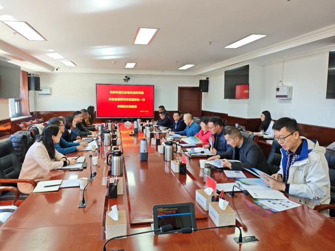 座谈会上,杨勇对任妮一行表示欢迎,他介绍了西藏自治区农牧科学院在历史沿革、组织架构、科技创新、人才政策等方面的基本情况,以及关于藏区农业数智化转型的设想和需求。任妮介绍了我院智慧农业发展历史现状、学科布局、人才队伍、数智化技术创新及应用案例等,并分享了对藏区农业产业数智化转型的难点及发展路径的思考。双方围绕设施果蔬、水产养殖、畜牧养殖、作物育种、资源环境监测评价、牧草管理利用等领域的数智化需求和合作方向进行了深入的交流探讨。