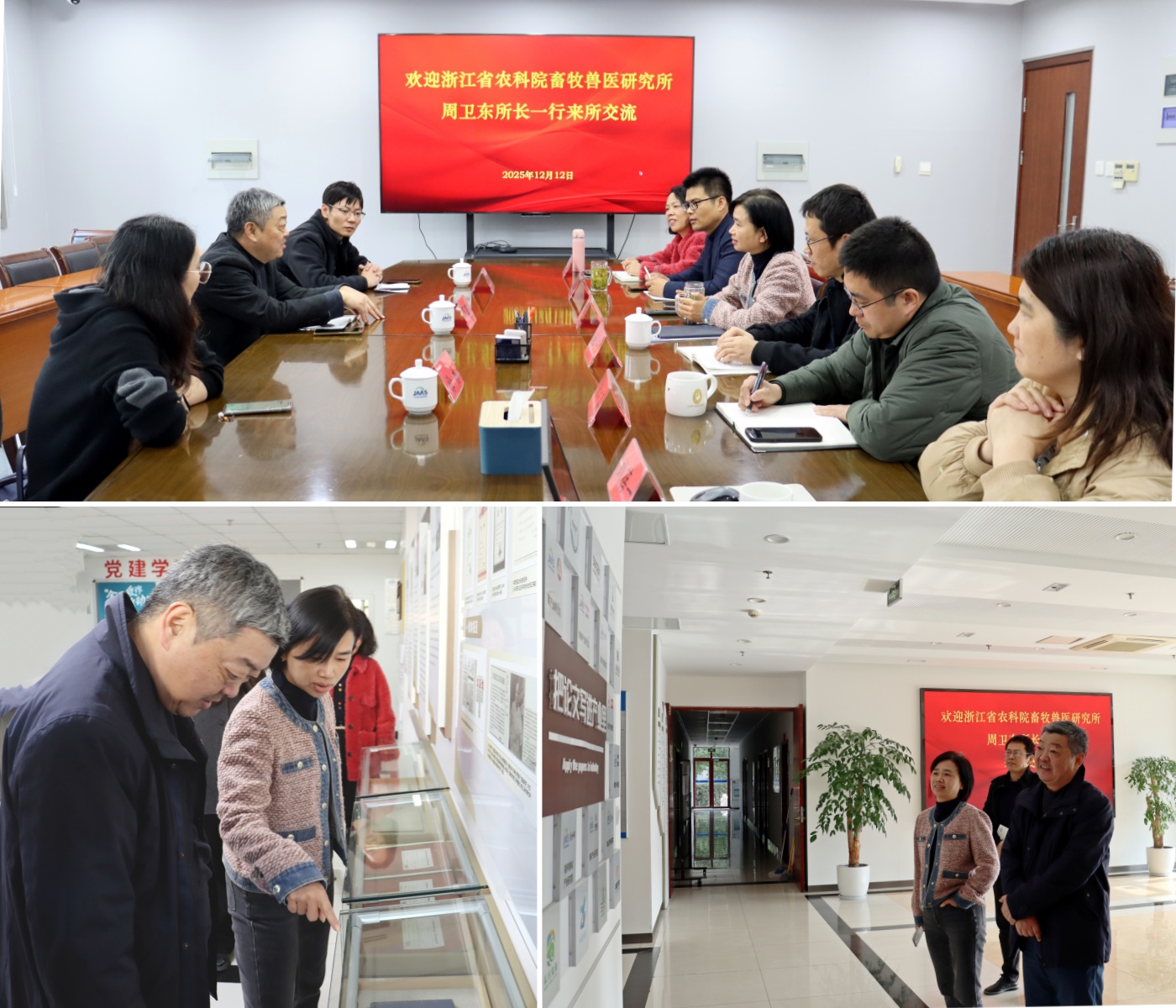 12月12日,浙江省农业科学院畜牧兽医所所长周卫东一行来畜牧所调研交流,畜牧所所长叶小梅主持接待,所领导班子及相关创新团队负责人参加会议。