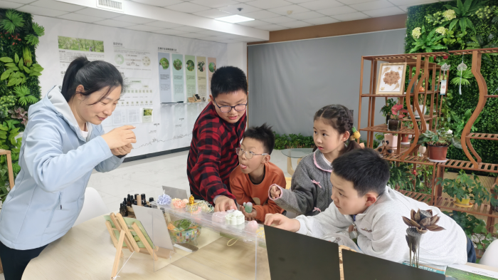 上午10时,包饺子活动在都市农园馆热闹开场。揉面、擀皮、填馅、捏合,孩子们在大手覆小手中学会包饺子,也体会到“一粥一饭来之不易”。热腾腾的饺子出锅后,大家围坐分享,欢声笑语里满是家的味道。午后,在园艺疗法与绿色康养实验室,面对会发光的仪器和散发香味的木头,孩子们纷纷好奇发问:“你们上班为什么比我们上学好玩?”科研人员用通俗易懂的语言一一解答,在孩子们心中悄然播下科学的种子。科普研学环节,通过组织对“美丽农科院”的实景参观讲解,带领孩子们进一步了解植物生长规律,并鼓励他们用画笔或文字记录所见所感,珍藏这份春日农科记忆。