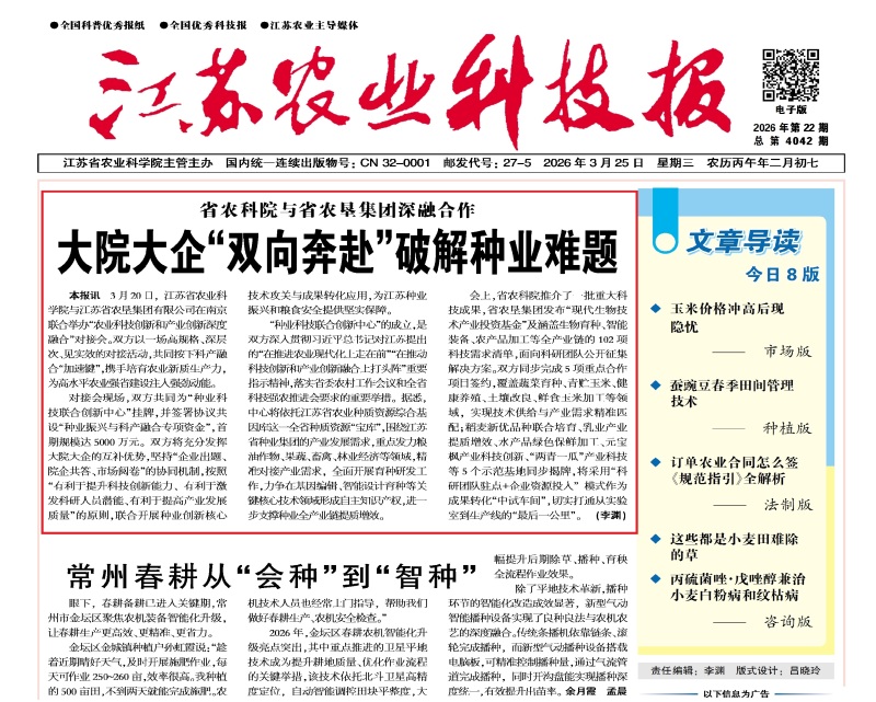 来源:江苏农业科技报