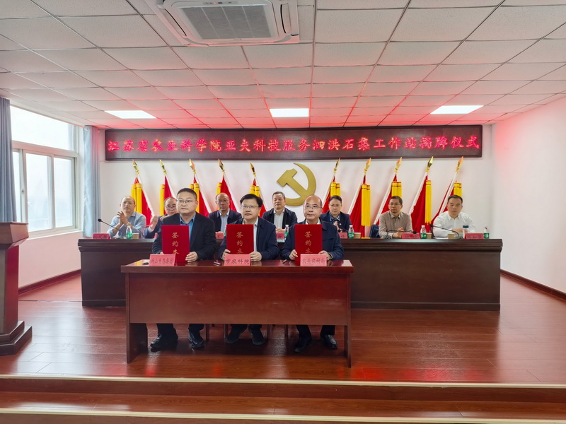 10月17日,江苏省农业科学院亚夫科技服务泗洪石集工作站签约揭牌仪式在泗洪县石集乡举行。副院长陈新、宿迁市政府副市长武倩出席仪式并为工作站揭牌。院成果转化处处长顾军,宿迁市政府副秘书长钟波,泗洪县副县长冯如张,宿迁所、泗洪县农业农村局、泗洪县两山生态发展集团主要负责人,江苏溧河洼生态农业有限公司、苏北粮油公司企业负责人,及泗洪县各乡镇农技人员、种植大户共计60余人参加了活动。宿迁所党委书记、所长刘新主持仪式。