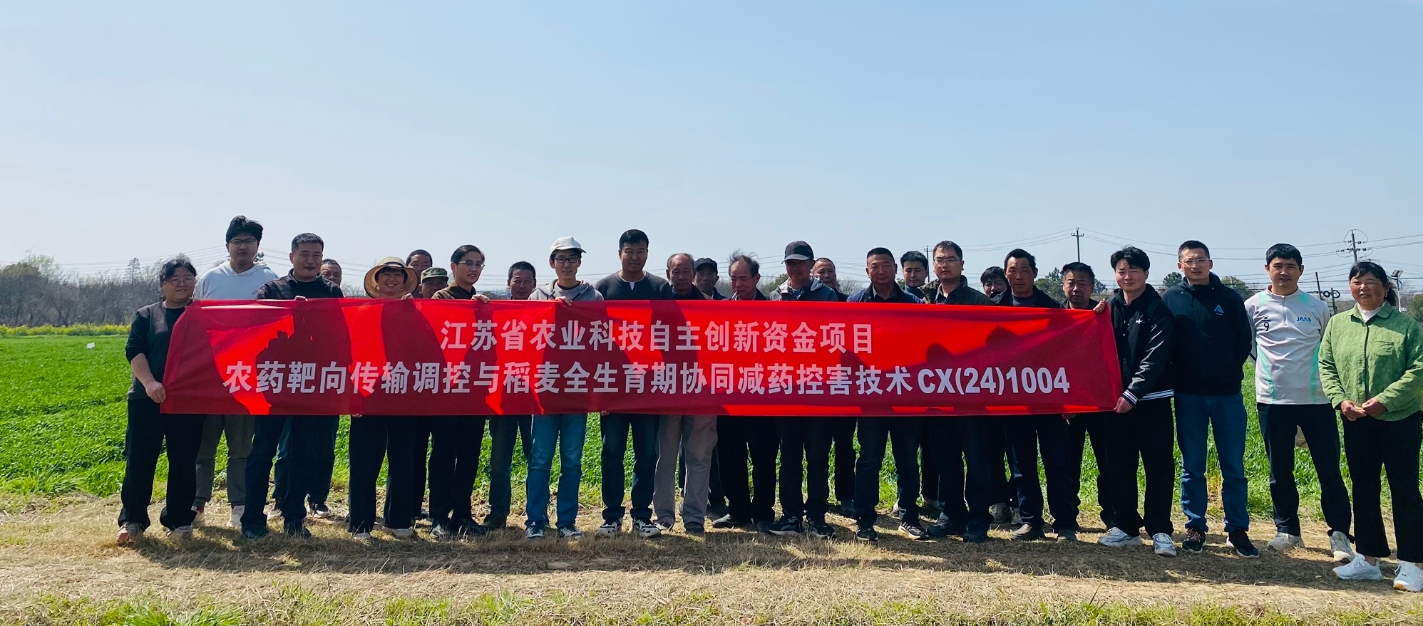 为加快农业科技成果转化应用,集中展示小麦拌种环节的减药增效新突破,3月28日,农产品质量安全与营养研究所主持的江苏省农业科技自主创新资金项目“农药靶向传输调控与稻麦全生育期协同减药控害技术”现场观摩会在溧水克胜蜻蜓农服试验示范基地举行。项目组成员、植保领域专家及周边种粮大户等30余人齐聚田间地头,实地见证科技赋能绿色农业的实践成效。