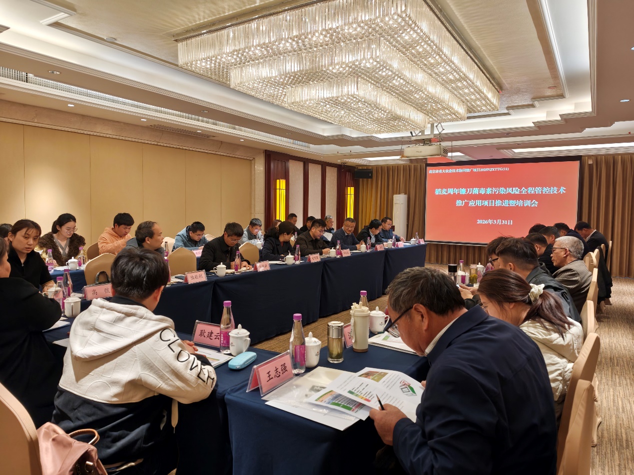 3月31日至4月1日,由我院质量安全所承担的南京市重大农业技术协同推广项目“稻麦周年镰刀菌毒素污染风险全程管控技术推广应用”推进暨培训会在南京市高淳区顺利召开。来自高淳、溧水、江宁、浦口、六合区植保植检站分管负责同志、乡镇农技推广骨干和示范基地负责人共50余人参会。会议由项目首席专家、质量安全所副所长徐剑宏研究员主持。