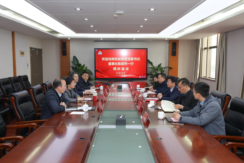 3月5日上午,光明农业发展(集团)有限公司党委书记、董事长陈斐然一行来我院调研,光明农发集团副总裁王金华陪同调研。我院院长、党委副书记朱艳主...