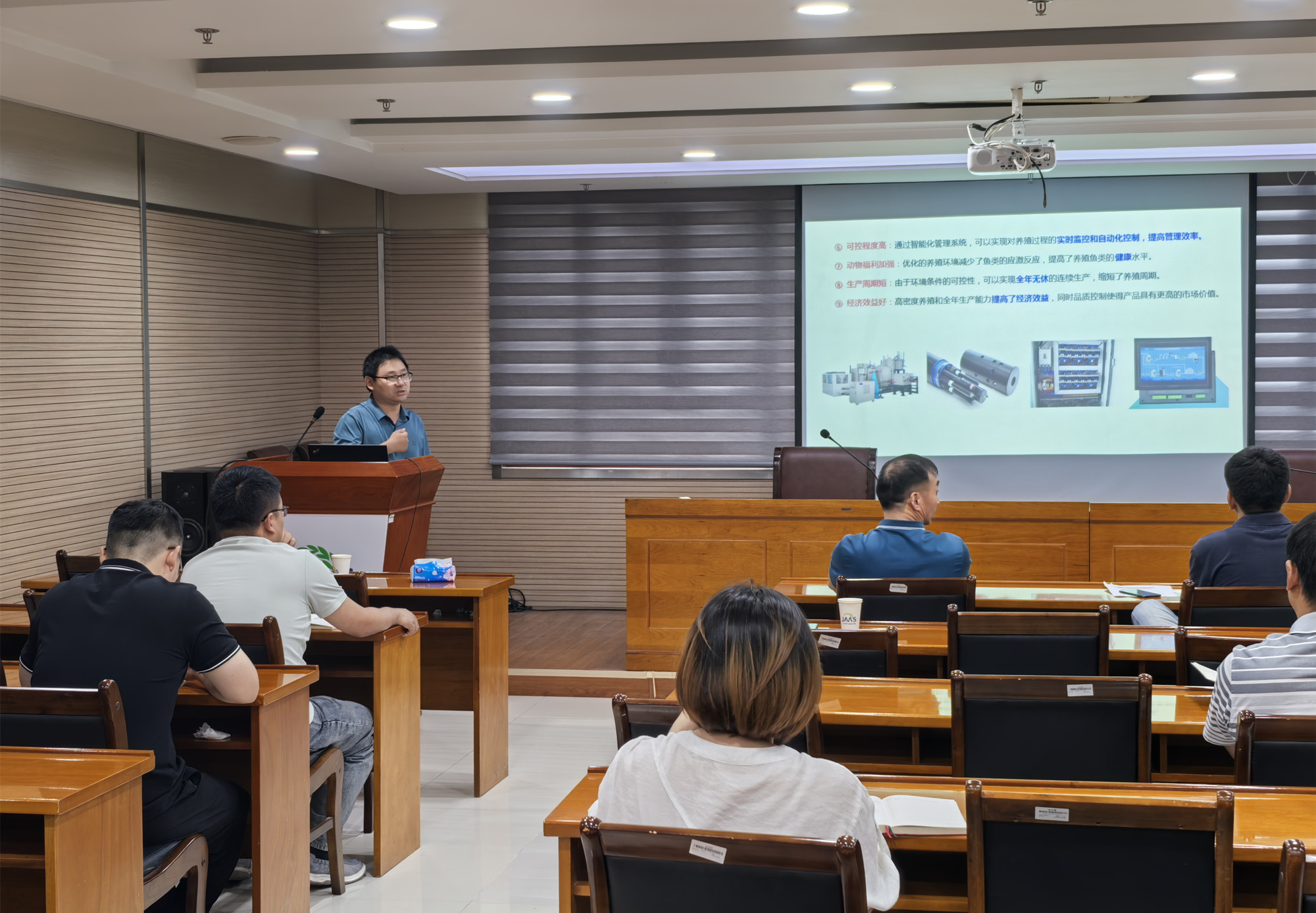 会上,Nazir Ahmad Khan教授作题为《Increasing the utilization of organic wastes and low value feeds with the help of lignin degrading fungi》学术报告,详细阐述了木质素降解真菌菌株的筛选及其在有机废弃物和低值饲料中的应用;刘秦华副教授作题为《青贮饲料在草鱼养殖中的应用研究》学术报告,简要介绍了饲喂田菁和紫花苜蓿青贮饲料对草鱼生长性能及鱼肉品质的影响。两场报告生动有趣、内容丰富,深受启发。随后,与会科研骨干和两位专家就真菌对木质素的降解效果和青贮饲料在草鱼养殖中的应用进行了交流讨论。