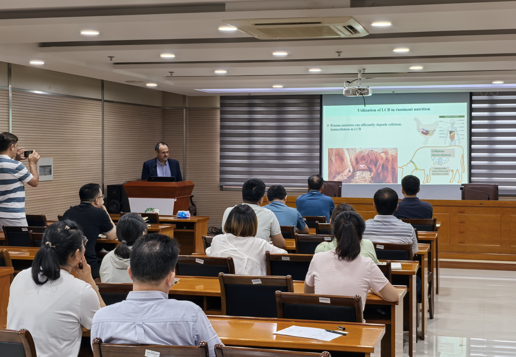 6月27日,巴基斯坦白沙瓦农业大学动物营养系主任Nazir Ahmad Khan教授和南京农业大学草业学院刘秦华副教授应邀到畜牧所开展学术交流。报告会由畜牧所相关负责人主持,共30余名相关科研骨干和部分学生参加交流。