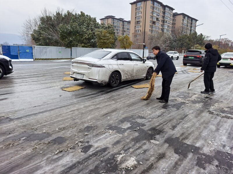 特别值得一提的是,院后勤保卫处的高效协同为本次行动提供了坚实支撑。降雪伊始,后勤保卫处便精准预判需求,迅速调配融雪盐、防滑草垫等应急物资直达清雪一线,充分彰显了上下联动、齐心协力的团队合力,为扫雪除冰任务的高效完成提供了有力保障。