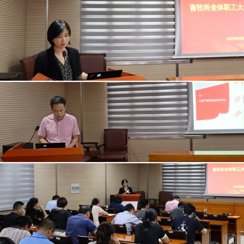 9月29日,畜牧所召开全体职工大会暨党员大会,部署节前重点工作,巩固深化学习教育成效,并将纪律作风建设和意识形态贯穿始终,推进作风建设常态长效。畜牧所所长、党总支书记叶小梅主持会议。