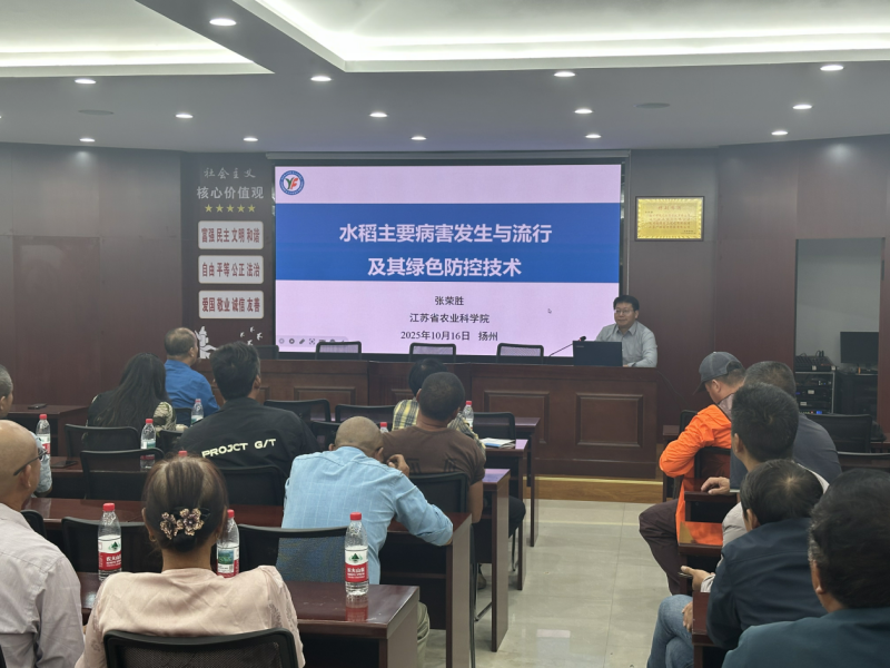 培训会上,特邀专家扬州大学张瑞宏教授介绍了“数字化精准化农艺农机融合大田耕种技术”在作物生长、病虫害防控中的应用,项目负责人张荣胜副研究员介绍了今年使用的“水稻主要病害发生与流行及其绿色防控技术”关键要点,强调水稻穗期病害的防控,要根据水稻品种特性针对性选择化学药剂和生物药剂协同应用,实现水稻病害高效绿色防控。