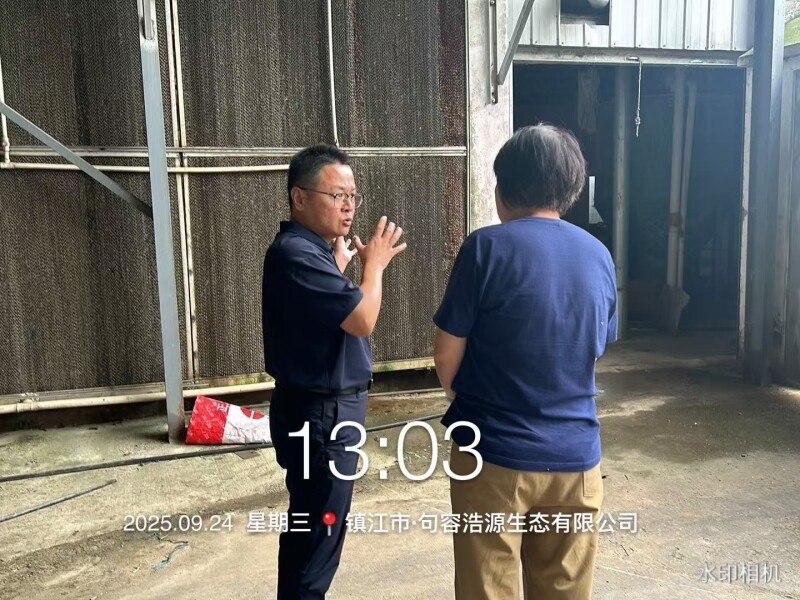 会后,潘孝青博士带领项目组相关成员赴项目实施基地句容市浩源生态农业科技有限公司开展实地考察。结合企业现有养殖规模、设施条件及实际生产中遇到的环境管理难题,潘孝青博士与公司负责人就蛋鸡养殖环境精准管控技术细节展开深入交流,针对性探讨了季节交替期通风策略调整、高温高湿环境下蛋鸡应激防控、粪污处理与环境协同优化等具体问题,并提出了个性化技术优化方案。公司负责人对潘孝青博士的技术指导给予高度评价,认为此次交流切实抓准了企业在养殖环境管控中的痛点问题,十分期待后续与项目团队开展更紧密的技术合作。