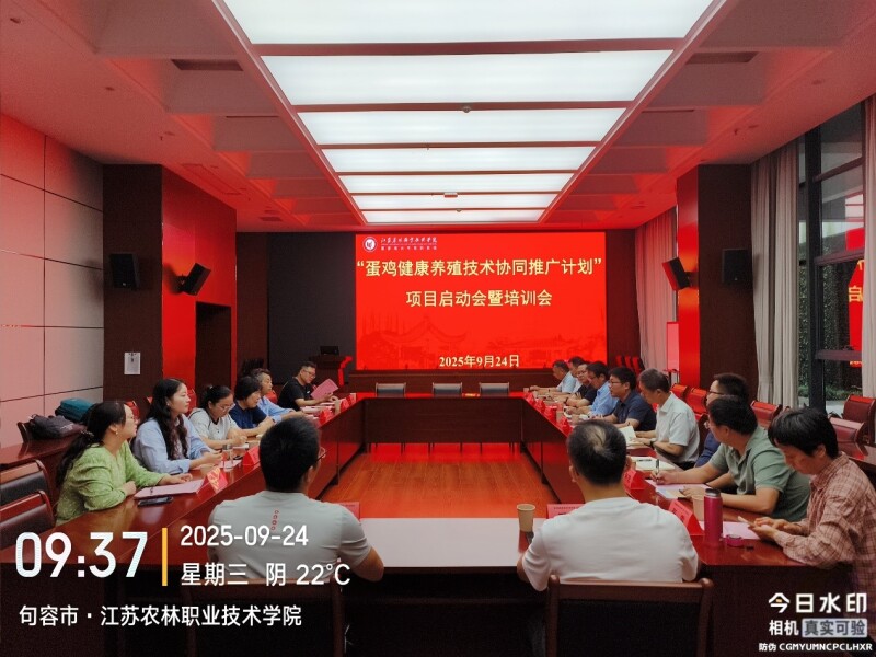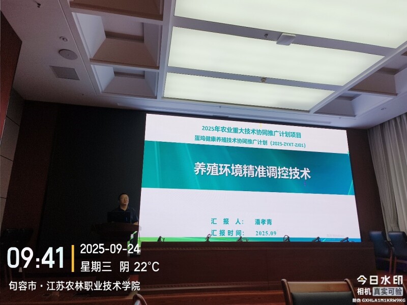 9月24日,2025年江苏省农业重大技术协同推广计划项目“蛋鸡健康养殖技术协同推广计划”启动会在江苏农林职业技术学院顺利召开。项目负责人、镇江市动物疫病预防控制中心单昊书研究员及其团队人员、各协同单位代表、示范基地相关负责人等参加会议。畜牧所潘孝青博士作为项目养殖环境技术负责人参会。