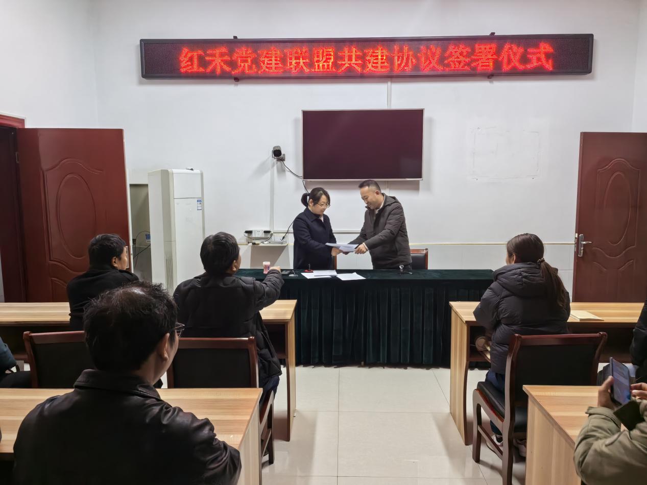 期间,双方党员代表在横沟村党总支会议室围绕“党建引领乡村振兴”主题进行了深入交流,并签订红禾党建联盟共建协议。双方一致表示,将依托“红禾党建联盟”平台,整合双方优势资源,精心定制整村科技推进方案,塑造“品种展示—技术示范—文化赋能”一体化科技新场景,构建“专家驻点研发+合作社规模种植+企业品牌运营”的产业新生态,打造“党建链”引领“技术链”、赋能“产业链”的乡村振兴示范样板。