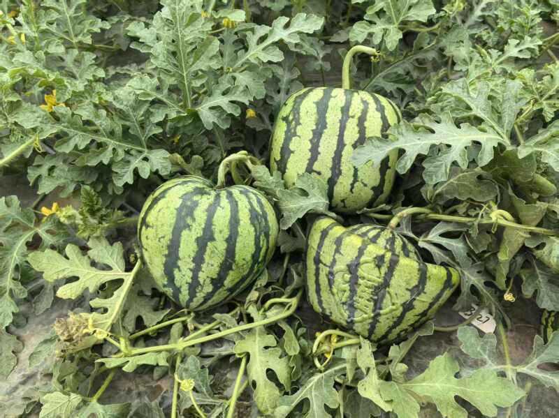 西瓜异形瓜培育是本次技术服务的又一亮点,团队指导瓜农在西瓜坐果后约20天,将幼果套入特制的透明有机模具中,通过特定的栽培技术管理,让西瓜按照模具形状自然生长,使其长成正方形、心形、元宝形等造型。异形瓜不仅具有食用价值,更有极高的观赏价值和礼品属性,能够有效提升产品的附加值。