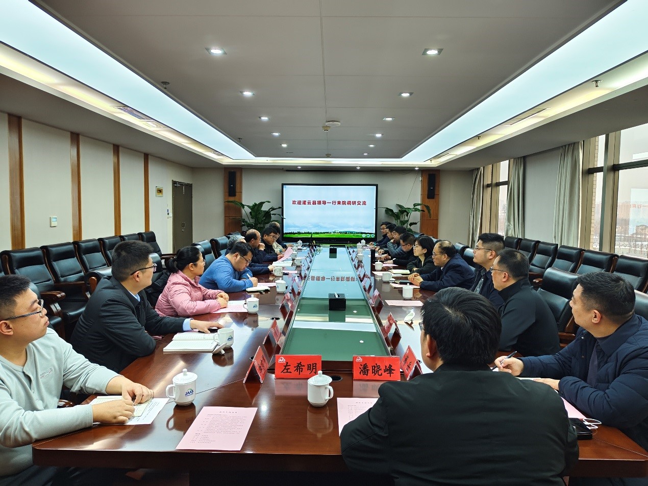 2月21日,灌云县委副书记、省委驻灌云县乡村振兴工作队队长马天抒一行到我院调研交流,副院长、党委委员孙洪武主持接待,灌云县委常委周建军,灌云县龙苴镇、县农业农村局以及我院成果转化处、科研处、粮作所、经作所、加工所、休闲所相关负责同志和科技人员参加交流。