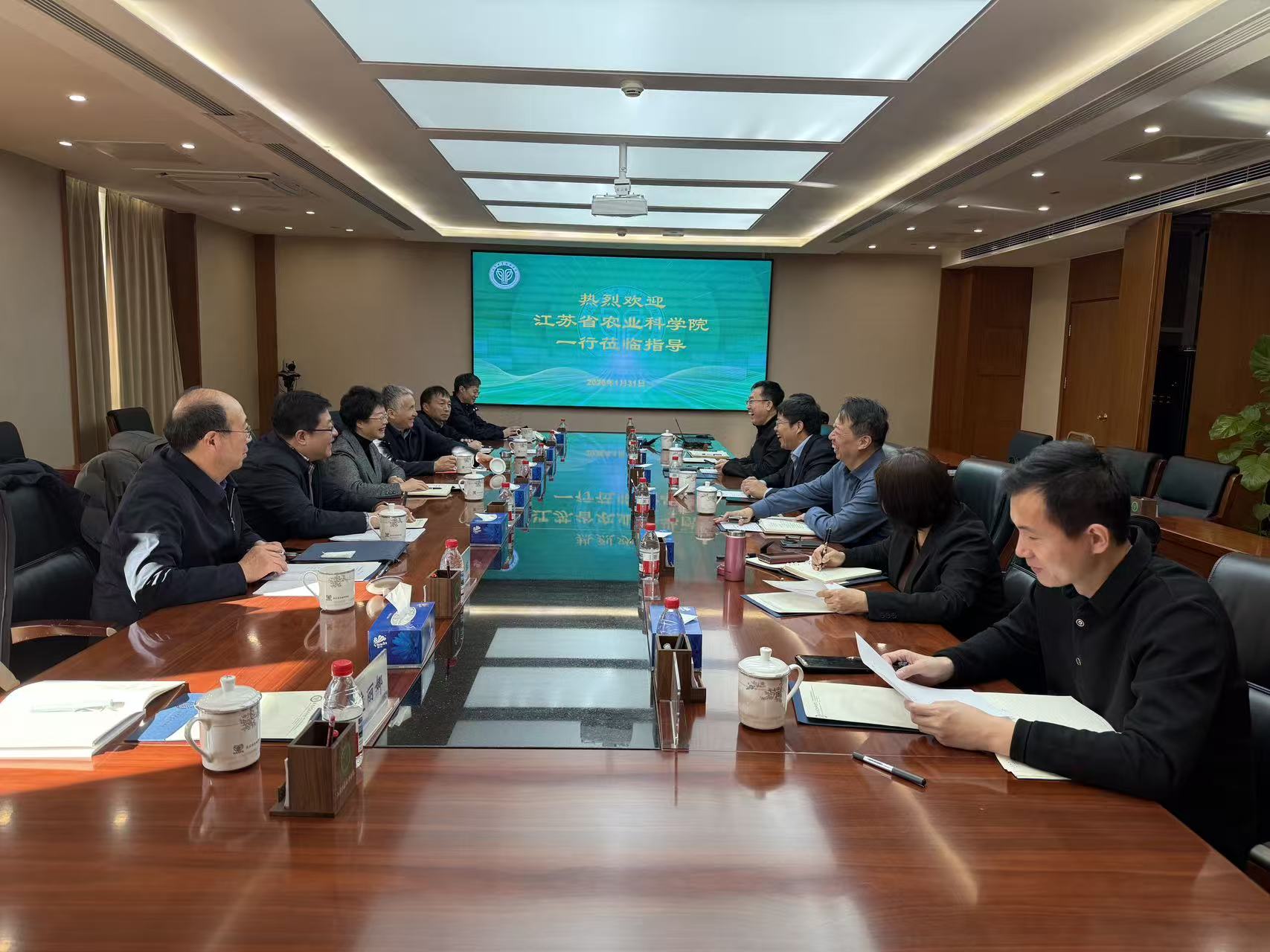 1月30日至31日,院长、党委副书记朱艳率队赴中国农业科学院、北京市农林科学院调研。中国农业科学院院长、党组副书记黄三文院士会见朱艳一行,中国农业科学院副院长叶玉江、北京市农林科学院副院长杨国航分别主持接待并进行座谈交流。我院副院长、党委委员孙洪武,党委委员、院办公室主任苏国东陪同调研。