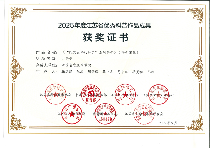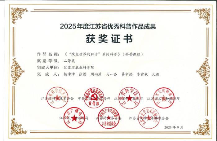近日,2025年度江苏省优秀科普作品成果评选结果公布,我院“改变世界的种子”系列课程获科普课程类二等奖。