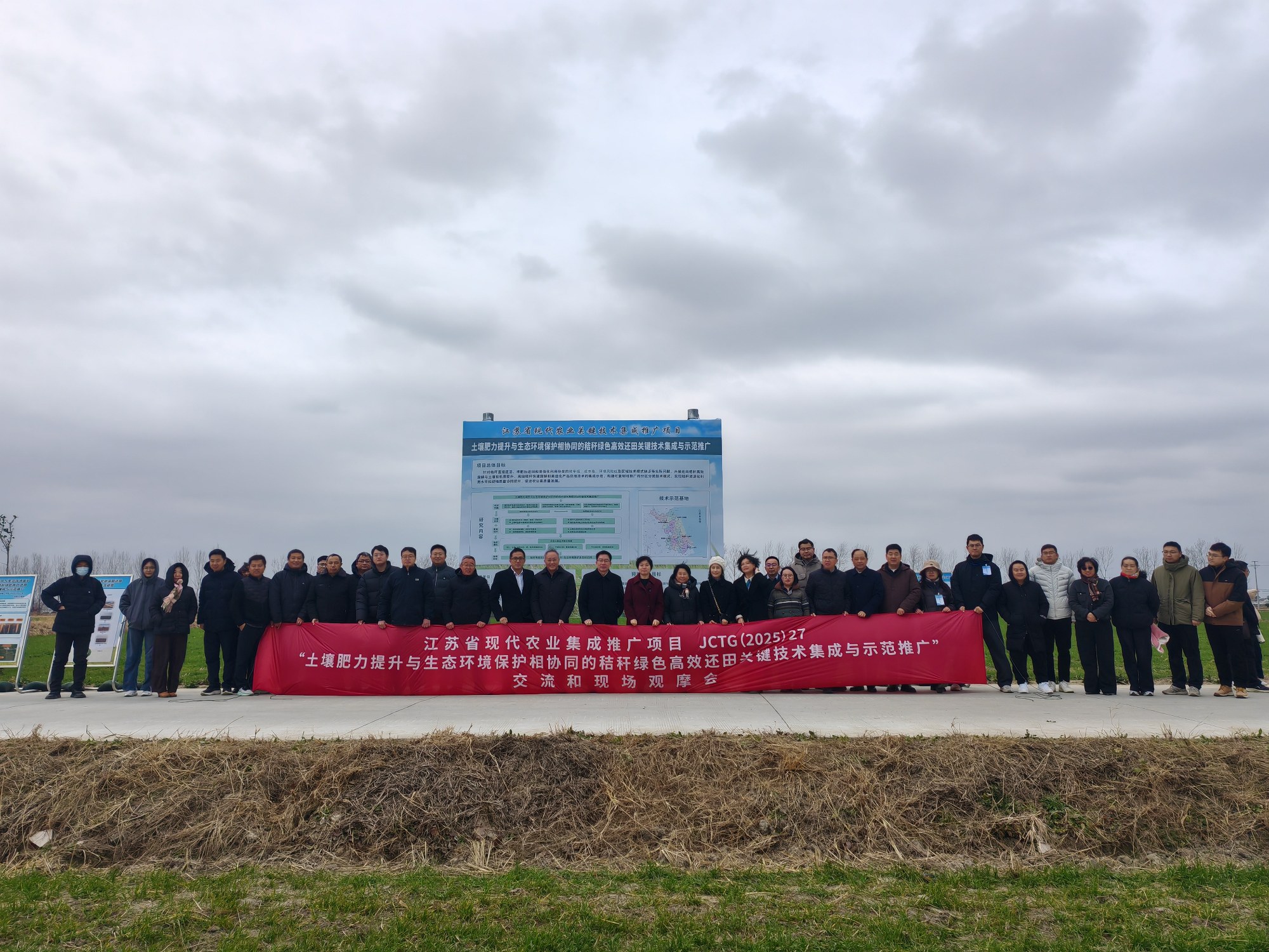 为促进理论与实践紧密结合,下午,与会代表赴如皋市秸秆绿色高效还田技术示范点进行现场观摩。资环所所长马艳研究员作现场介绍,何益军、王冉及长三角兄弟省市农科院同行、地方推广部门代表,实地察看了不同秸秆还田方式对小麦长势、耕层结构与秸秆地表残留的对比效果,并通过土壤剖面现场观摩了耕层厚度、秸秆腐解状态及作物根系分布的差异,直观生动展示了秸秆科学还田与耕地质量提升的实际应用成效。
