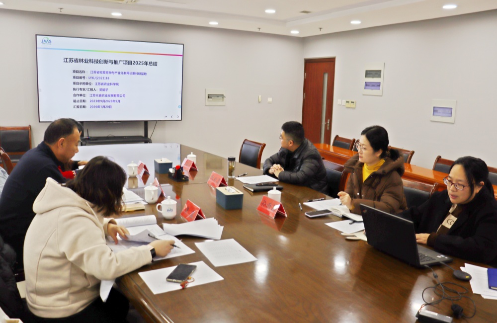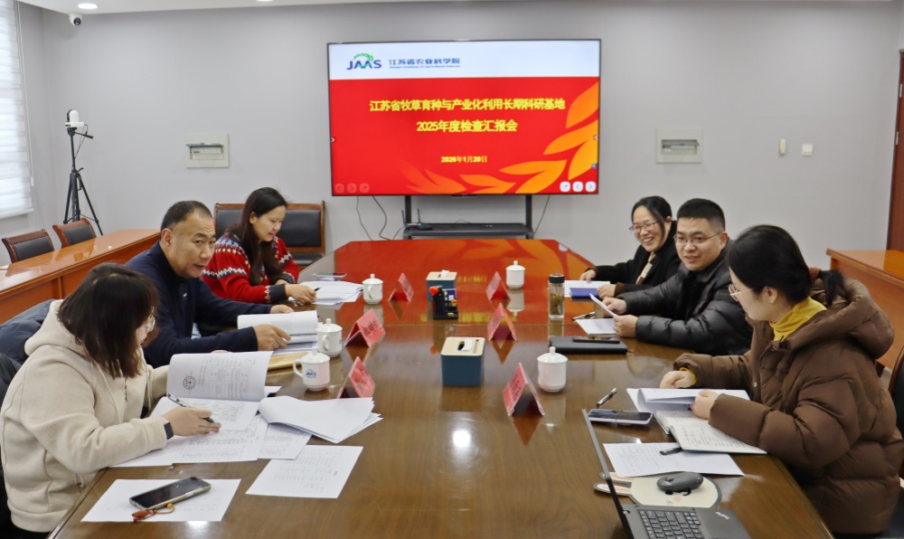 1月20日,江苏省林业科技创新与推广项目“江苏省牧草育种与产业化利用长期科研基地”(项目编号:LYKJ〔2023〕18)2025年度检查会议在南京召开。该项目由畜牧所草遗传育种与生态应用创新团队主持承担。院科研处组织相关专家、畜牧所相关负责人及项目组成员参加会议。